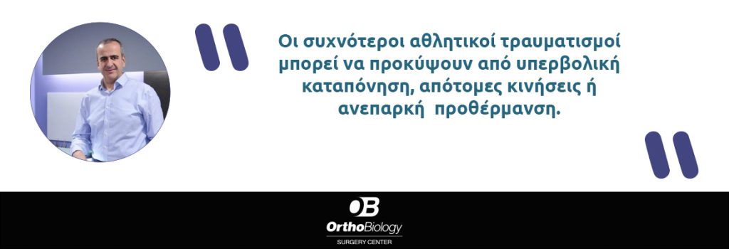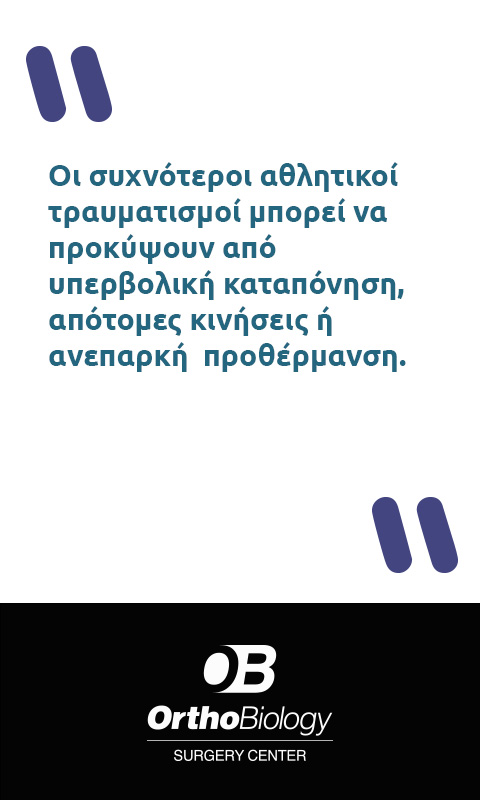 Εάν αθλείστε και σας ταλαιπωρεί κάποιος αθλητικός τραυματισμός, ο Δρ. Μιχάλης Ιωσηφίδης και οι επιστημονικοί συνεργάτες του στο Orthobiology Surgery Center βρίσκονται στη διάθεσή σας. Στο OrthobiologySurgery σχεδιάζονται εξατομικευμένα θεραπευτικά πλάνα βασισμένα στις πιο σύγχρονες θεραπείες ελάχιστης επεμβατικότητας. Η κλινική του Δρ. Ιωσηφίδη είναι διαπιστευμένο Εκπαιδευτικό Κέντρο από την Ευρωπαϊκή Εταιρεία Αθλητικής Τραυματολογίας, και Αρθροσκόπησης (ESSKA), από τη διεθνή Εταιρεία Αρθροσκόπησης, και Ορθοπαιδικής Αθλητιατρικής (ISAKOS) και τη Διεθνή Εταιρεία Αναγέννησης του Χόνδρου και Διατήρησης των Αρθρώσεων (ICRS). Επικοινωνήστε μαζί μας και κλείστε το ραντεβού σας.